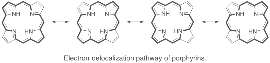 Through their aromatic structure, the porphyrins are very stable molecules compared with other organic dyes or metal complexes. Their aromatic system consists of 22 π–electrons of which 18 are involved in the aromaticity providing them particular spectroscopic properties as a strong absorption in the visible and the near–UV for instance. Their absorption spectrum consists in one intense band (≈ 105 M–1.cm–1) between 390 nm and 430 nm called Soret band, and several bands, ten to one hundred times less intense, located between 480 nm and 700 nm, called Q bands. Depending on the structure of the tetrapyrrolic compound, emission spectrum consists in 2 bands located between 650 nm and 750 nm. Compared with porphyrins, their analogs such as phthalocyanines exhibit very high extinction coefficients in a wavelength range that extends to around 700 nm. The porphyrins and related tetrapyrrole compounds represent the most important class of photosensitizers in natural photosynthesis. Hence, they are very attractive building–blocks for the construction of light-harvesting systems.