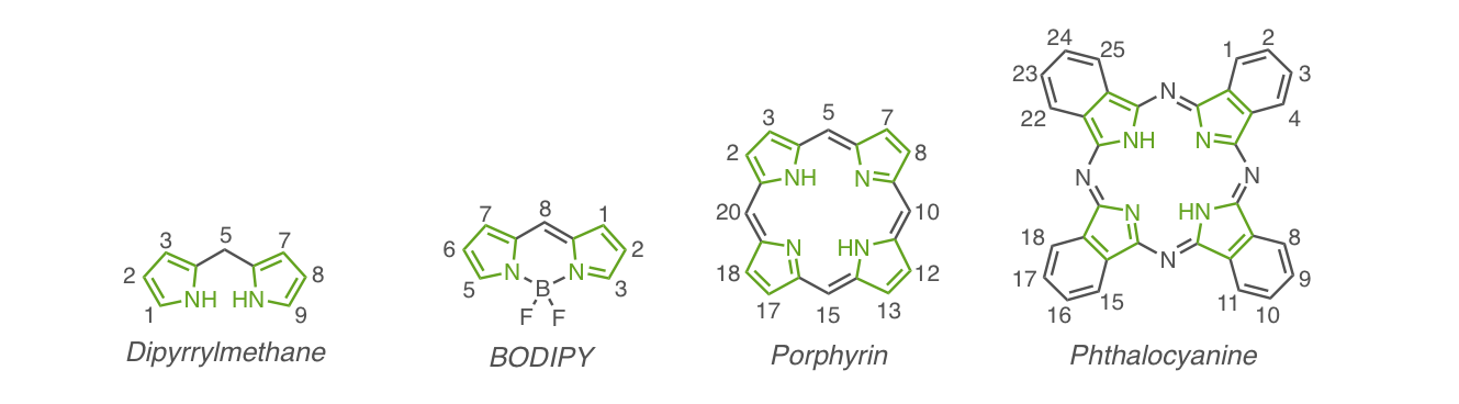 The scientists were soon interested in the porphyrin structure for the elaboration of molecular architectures in order to mimic the properties of natural systems. Their photosensitive characteristics coupled with their chelating capabilities make porphyrins, phthalocyanines and related compounds efficient systems for reversible axial ligation of adducts, electron transfer, light-harvesting and catalytic transformations that are crucial for the development of sustainable and green responses to modern societal challenges. Nowadays, porphyrins, phthalocyanines and related compounds are used in several applications in the fields of health, energy, smart materials and chemical processes.
